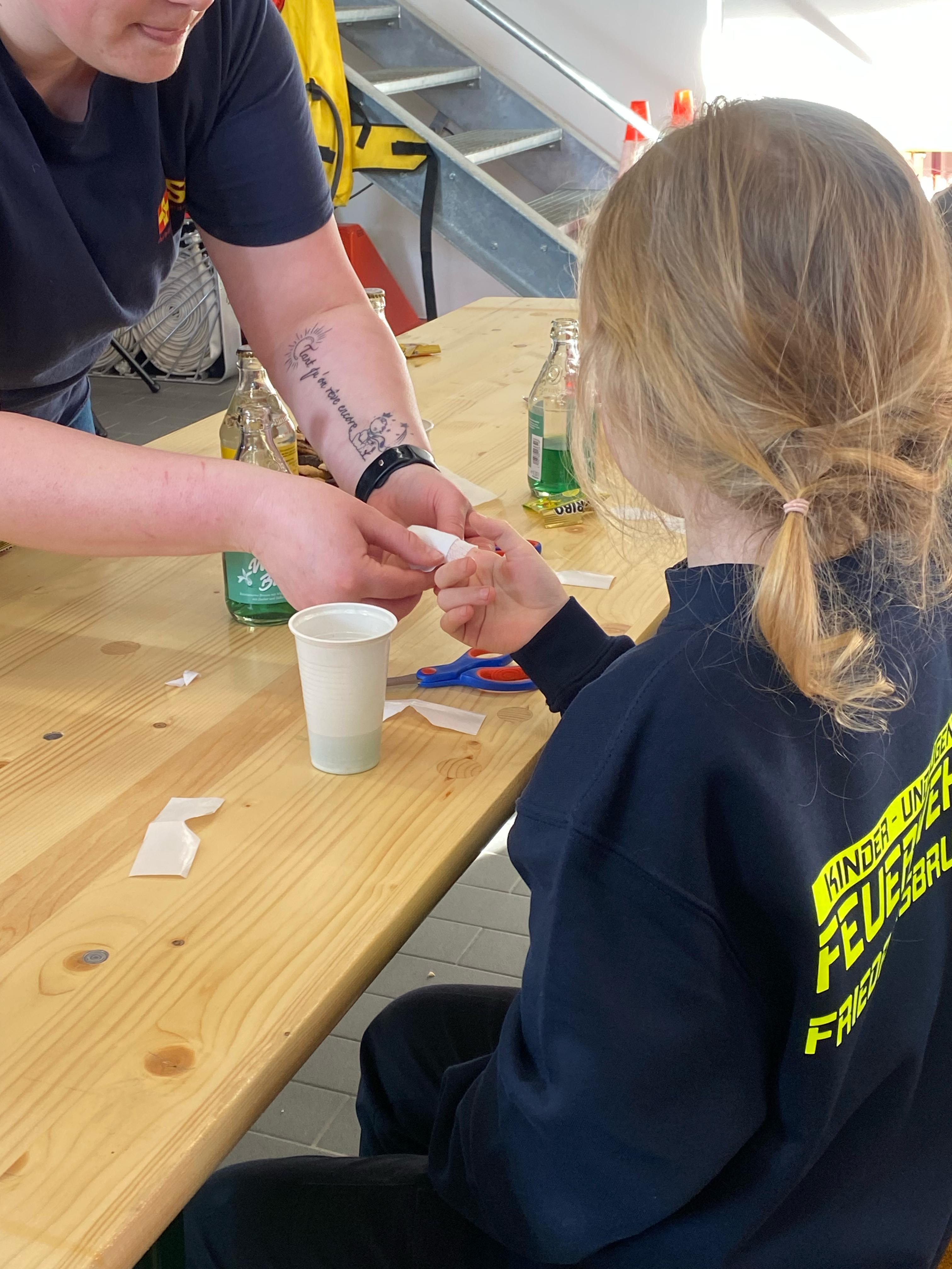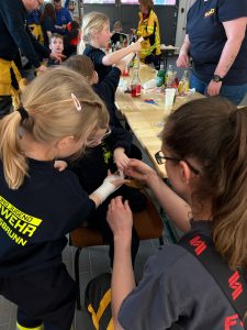 Unter fachkundiger Anleitung des ASB konnten die Kinder verschiedene Übungen durchführen und wichtige Handgriffe erlernen – vom Anlegen eines Pflasters bis hin zur Versorgung kleiner Wunden. Mit viel Begeisterung und großem Engagement zeigten die jungen Nachwuchsretter, dass sie auch im Bereich der Ersten Hilfe bestens vorbereitet sind.