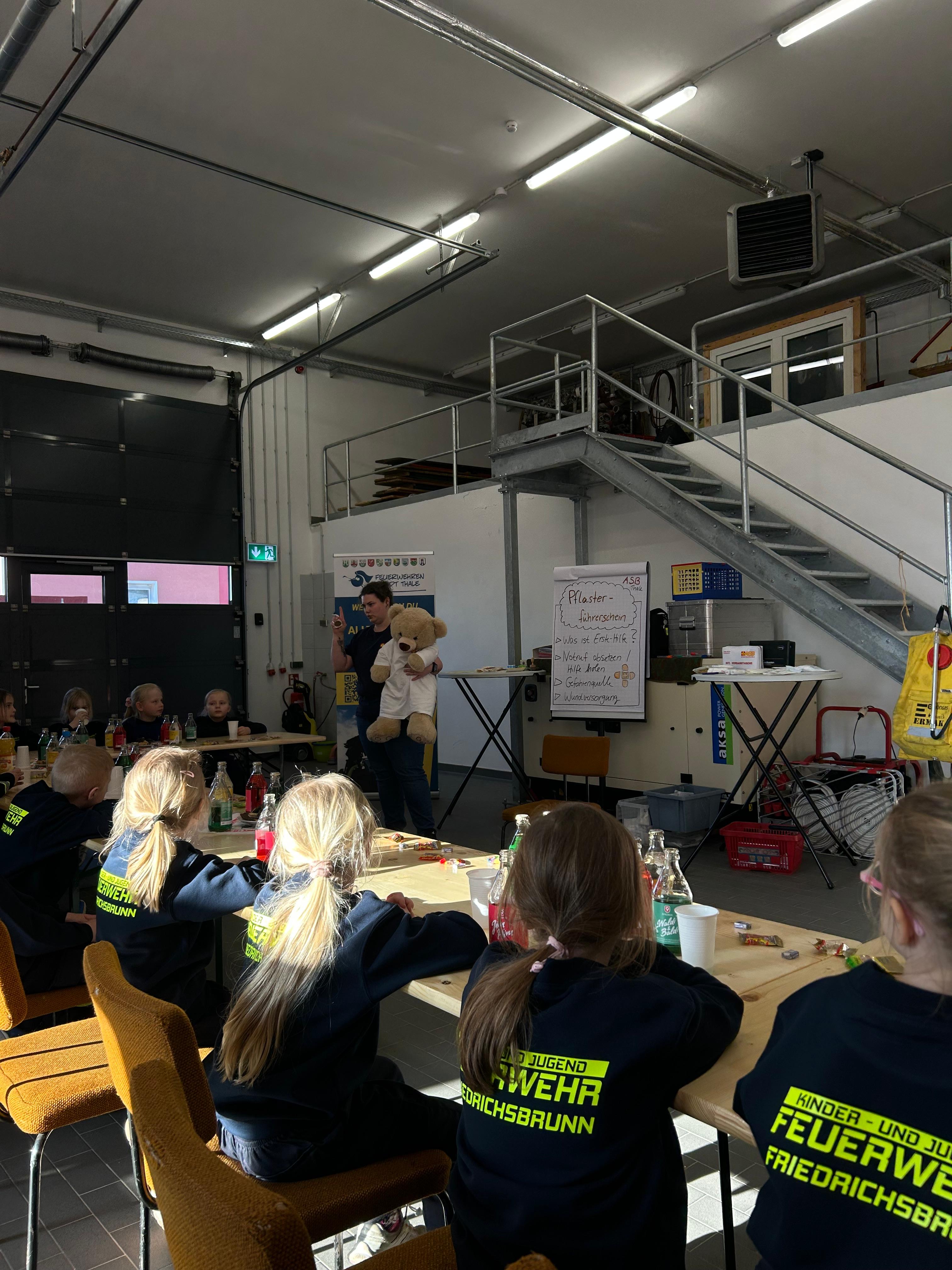 Um 16 Uhr eröffneten die Kinderwartin der Ortsfeuerwehr Friedrichsbrunn die Veranstaltung. Insgesamt 18 motivierte Kinder aus den Kinderfeuerwehren Friedrichsbrunn und Weddersleben nahmen daran teil und lernten auf spielerische Weise die Grundlagen der Ersten Hilfe.