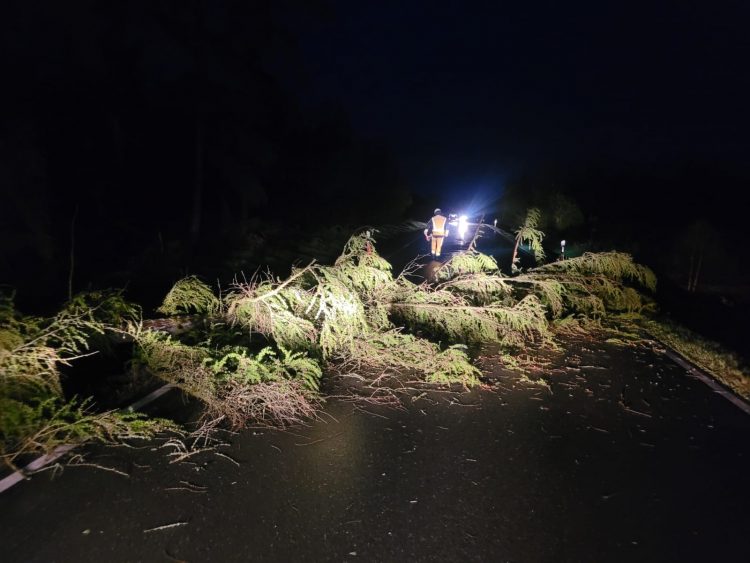 Die erst eintreffenden Kräfte aus Friedrichsbrunn sicherten die Straße beidseitig ab und entfernten den Baum mittels Motorkettensäge und Manpower. Anschließend konnte der Einsatz beendet werden.