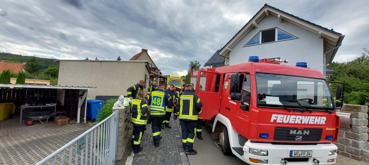 Zum Zeitpunkt des Eintreffens der Einsatzkräfte war eine deutliche Rauchentwicklung aus dem betroffenen Gebäude wahrzunehmen. Umgehend rüstete sich ein Trupp unter schwerem Atemschutz aus und verschaffte sich durch die Gebäuderückseite Zugang zum Brandobjekt. Parallel wurden zwei weitere Trupps mit handgeführten Rohren zur Personensuche in das betroffene Objekt entsandt. Nach einer gründlichen Durchsuchung des Gebäudes konnte jedoch keine Person gefunden werden. Anschließend wurde die Restablöschung durchgeführt und das Gebäude mittels Akkudrucklüfter rauchfrei gemacht.