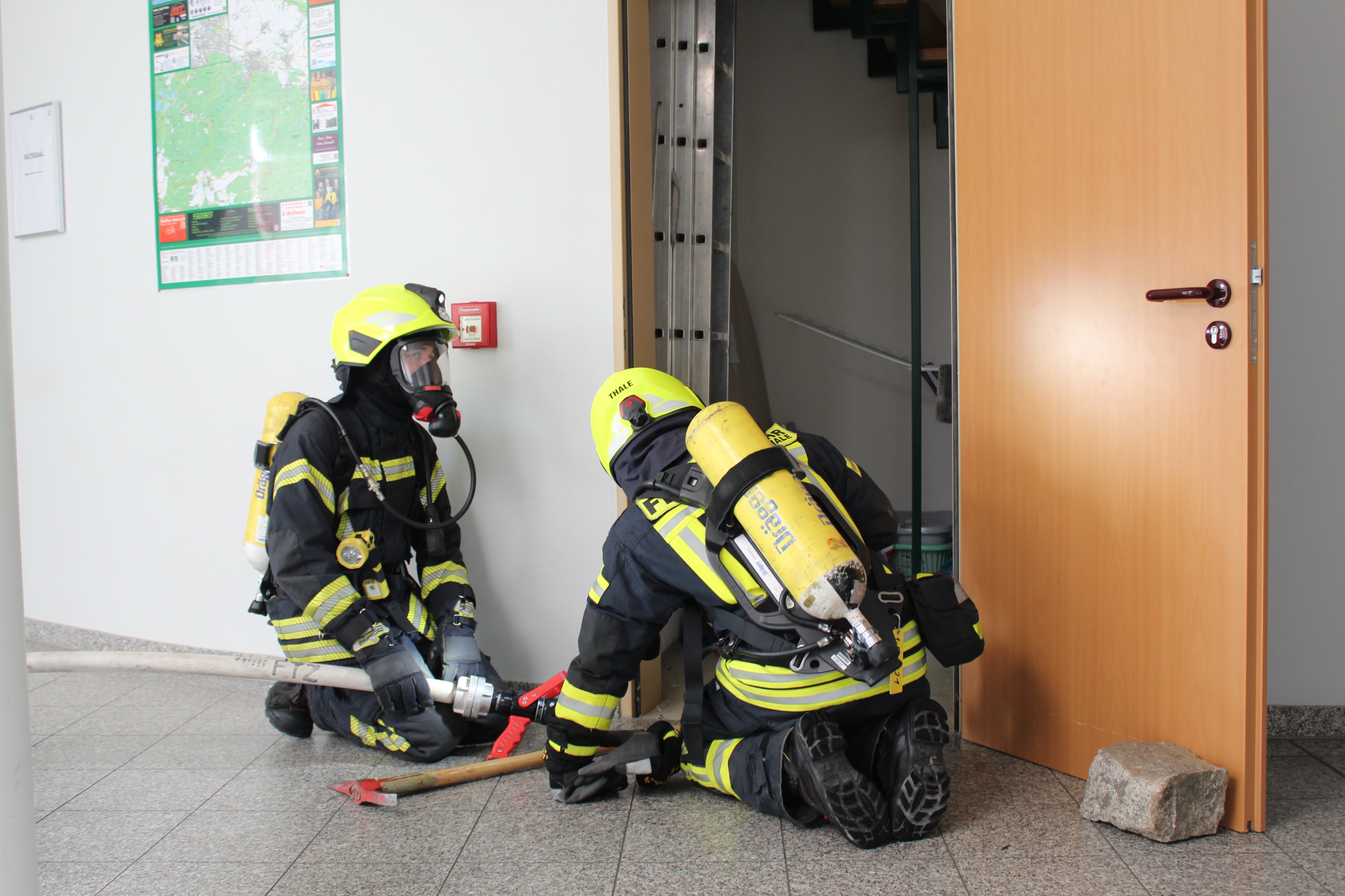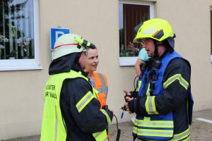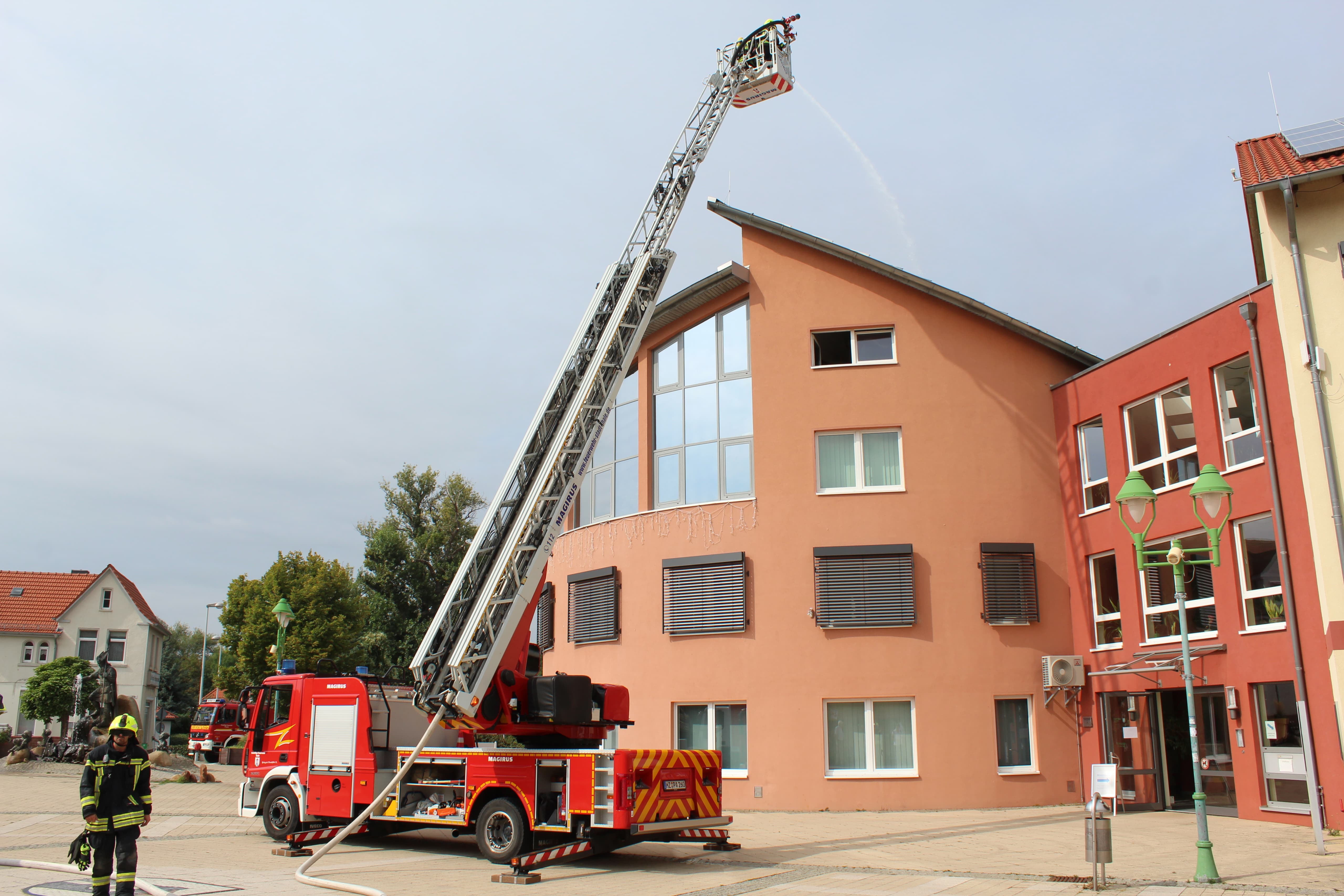 Das Szenario: In einem Technikraum im Rathaus kam es zu einem Brand. Zwei Personen galten daraufhin als vermisst. Ebenfalls befanden sich Mitglieder des SV Stahl Thale zu einer Vorstandssitzung im Rathaus.