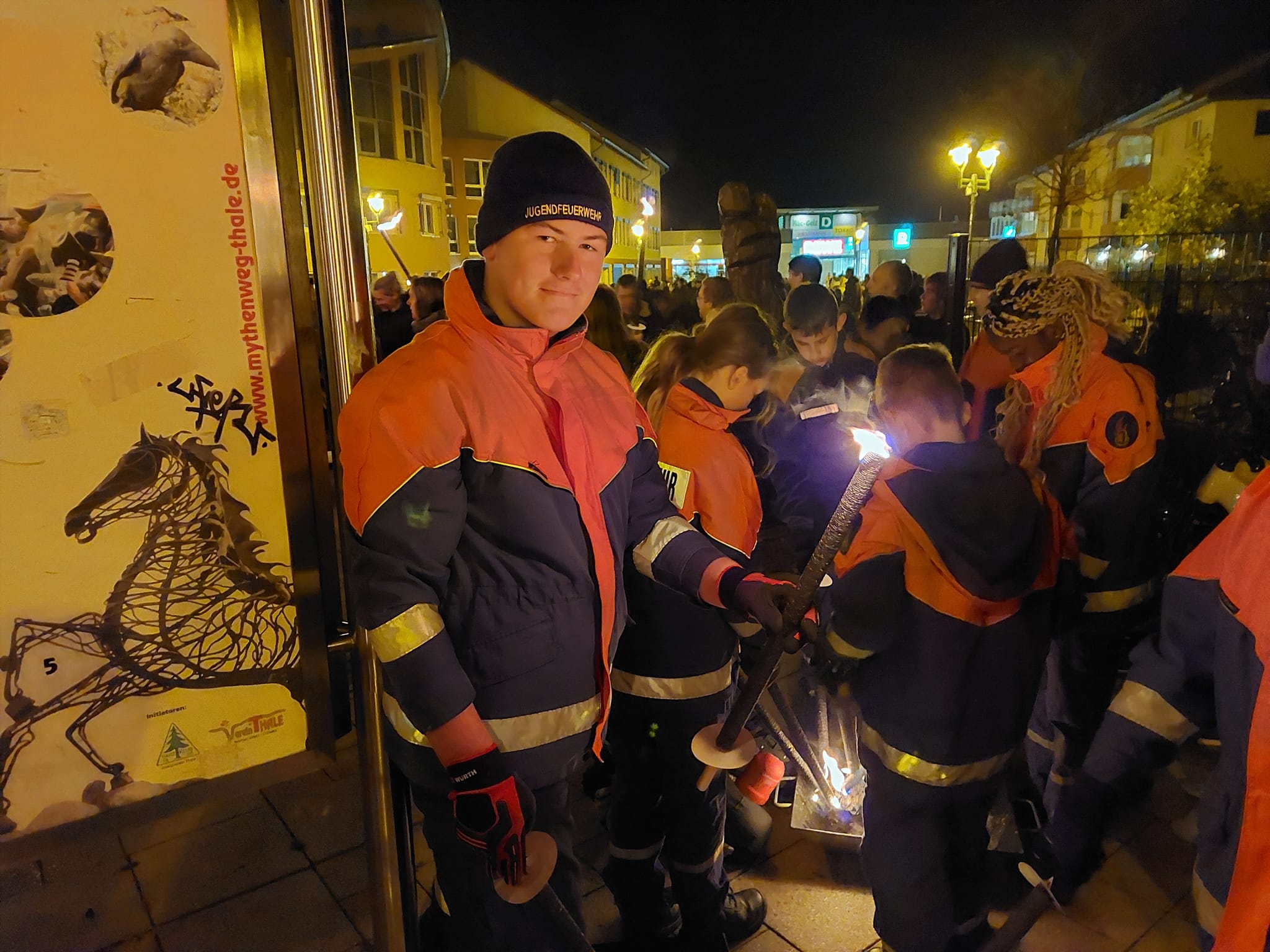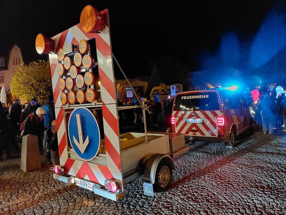 Die Ortsfeuerwehr Weddersleben übernahm mit ihrem Verkehrssicherungsanhänger die Straßensperrungen, damit die Umzugsteilnehmer und Zuschauer sicher feiern konnten. Die Thalenser Jugendfeuerwehr begleitete den Fackelumzug aufmerksam und unterstützte so die Veranstaltung tatkräftig. Und für das Highlight des Abends – die spektakuläre Feuershow – standen die Kameraden der Ortswehr Stecklenberg mit einer Brandsicherheitswache bereit und garantierten die nötige Sicherheit.