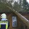 Diese Lagemeldung bestätigte sich: Niklas wirkt noch immer nach. Eine Fichte wurde entwurzelt, kippte aus nächster Nähe auf einen angrenzenden Bungalow und blieb auf Höhe des Dachfirsts hängen. Glücklicherweise wurde das Dach dabei nur in geringe Mitleidenschaft gezogen.