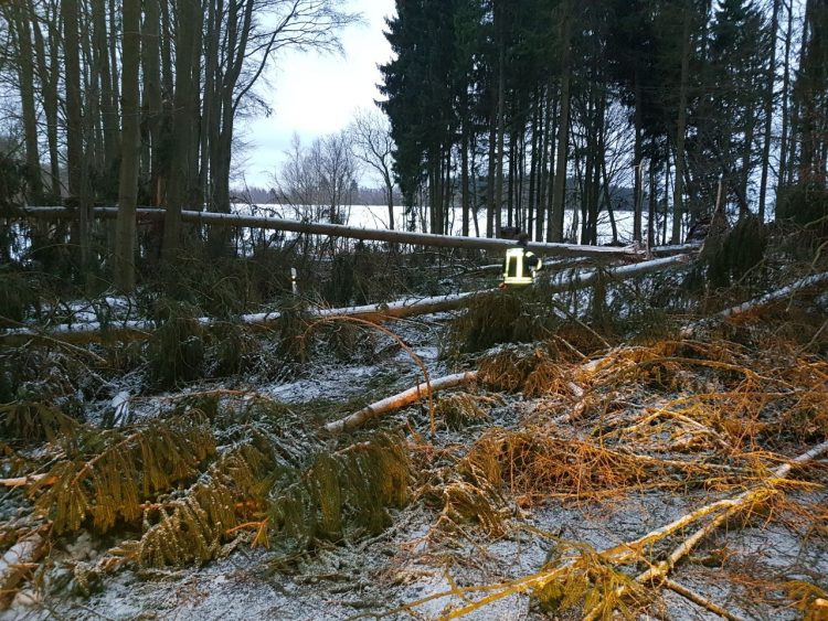 In die bereits gestern gesicherte Straße fuhr erneut ein PKW und stand vor den umgestürzten Bäume. Diese werden jedoch aufgrund der Vielzahl vom Forstbetrieb beräumt, somit war kein Eingreifen der Kameraden notwendig.