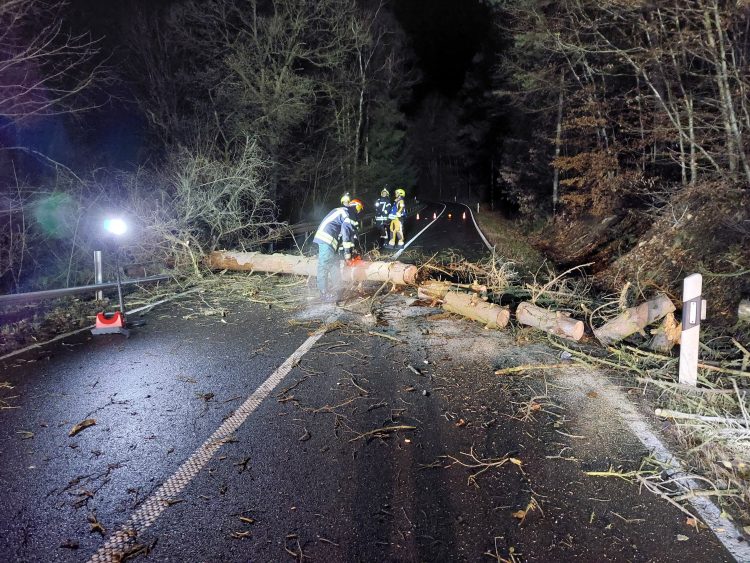 In der Nacht zum Donnerstag wurde die Ortsfeuerwehr Thale zu einem Baum auf Straße auf der Landstraße zwischen Thale und Friedrichsbrunn alarmiert.