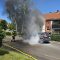 Als die Einsatzkräfte an der Einsatzstelle angekommen sind bestätigte sich dies nur zum Teil. Ein PKW brannte im vorderen Bereich in voller Ausdehnung, eine Brandausbreitung auf benachbarte Gebäude konnte jedoch ausgeschlossen werden. Mittels Schnellangriff brachte ein Trupp unter schwerem Atemschutz das Feuer schnell unter Kontrolle. Teile der alarmierten Einsatzkräfte beendeten daraufhin ihren Einsatz.