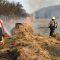 Vor Ort angekommen hat sich der Brand von einer anfänglich begrenzten Fläche auf angrenzende ca. 12 Strohballen und auch in der Nähe befindliche landwirtschaftliche Anhänger ausgebreitet.