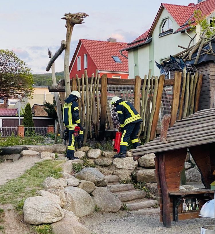 Freitagabend wurde die Ortsfeuerwehr Thale zu einem Kleinbrand am Spielplatz des Rathausplatzes alarmiert. Vor Ort brannte ein Stück Wiese unterhalb des Klettergerüstes.