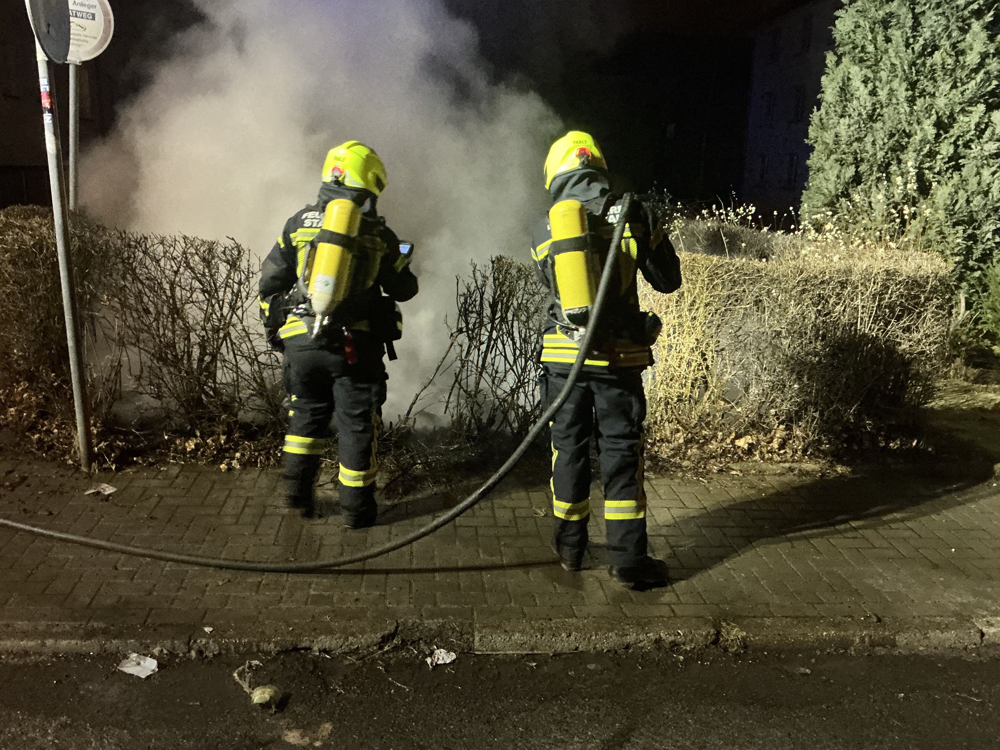 Am frühen Sonntagmorgen wurde die Ortsfeuerwehr Thale zu einem brennenden Müllcontainer alarmiert. Am Einsatzort bestätigte sich dies. Zwei Müllcontainer standen in Vollbrand. Umgehend wurde ein Löschangriff unter Atemschutz mittels Schnellangriff eingeleitet. Weitere Einsatzkräfte sicherten die Einsatzstelle. Die Löschmaßnahmen zeigten schnell Wirkung und die Brandstelle wurde mittels Wärmebildkamera kontrolliert. Abschließend konnte kontaminierte PSA durch die Einsatzstellenlogistik getauscht und der Einsatz beendet werden.