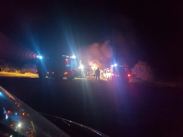 Vor Ort brannten mehrere Strohballen an einem Feldweg in voller Ausdehnung. Aufgrund der Lage entschied der örtliche Einsatzleiter die Strohballen kontrolliert abbrennen zu lassen.