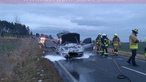 Vor Ort bestätigte sich die Lage, ein PKW brannte bereits lichterloh. Durch die Ortsfeuerwehr Börnecke wurde die Brandbekämpfung durch einen Angrisstrupp unter Atemschutz begonnen, wir unterstützen mit einem weiteren Trupp unter Atemschutz und sicherten die Wasserversorgung zum TSF-W Börnecke.