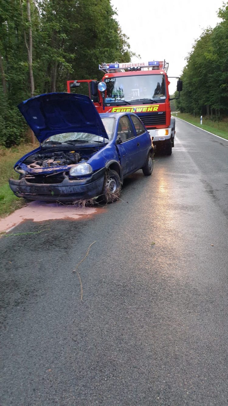 Die Ortsfeuerwehren Allrode und Friedrichsbrunn wurden zu auslaufenden Flüssigkeiten nach einem Verkehrsunfall alarmiert.