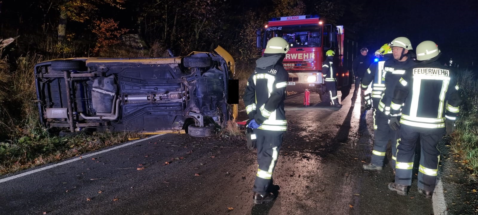 Die Einsatzkräfte sicherten die Unfallstelle ab und nahmen die Betreuung des Fahrers bis zum Eintreffen des Rettungsdienstes vor. Glücklicherweise konnte der Fahrer den PKW zuvor selbstständig verlassen.