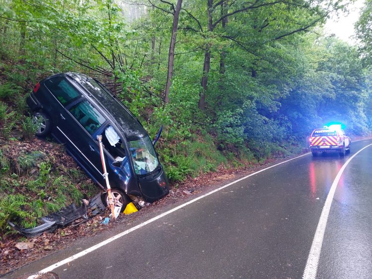 Am frühen Samstagabend wurde die Ortsfeuerwehr Thale gemeinsam mit dem Rettungsdienst und der Polizei zu einem Verkehrsunfall alarmiert. Beim Eintreffen der ersten Einsatzkräfte konnte ein PKW in ungewöhnlicher Hanglage festgestellt werden. Bei dem Unfall wurde eine Person verletzt. Des Weiteren befand sich ein Hund im Fahrzeug. Beide wurden beim Eintreffen der Einsatzkräfte bereits durch Ersthelfer betreut. Die Einsatzkräfte sicherten die Einsatzstelle gegen den fließenden Verkehr und das Fahrzeug gegen abrutschen ab. Anschließend wurde die verletzte Person, welche sich aufgrund der Unfallsituation in einer misslichen Lage am PKW befand gerettet und dem Rettungsdienst zu geführt.