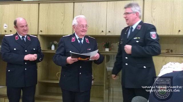 Nach der Eröffnung erfolgte der Bericht der Wehrleitung mit dem Rückblick auf unsere Einsätze im letzten Jahr (11 Stück, davon 6 TH-Einsätze und 5 Brandeinsätze), der Ausbildungsstand der Wehr wurde dargelegt und auch Kritik geäußert. In der anschließenden Aussprache konnte jeder Kamerad sich dazu äußern, danach hatten die Gäste das Wort. Die Amtsperiode unseres stellvertretenden Ortswehrleiters lief aus, so dass eine Neuwahl nötig wurde. In der Wahl wurde der alte und nun auch neue stellvertretende Ortswehrleiter in seinem Amt bestätigt. Als letzten Punkt gab es eine Neuaufnahme, eine Beförderung, drei Auszeichnungen für 20-jährige sowie eine Auszeichnung für 40-jährige Mitgliedschaft in der Warnstedter Wehr zu feiern.