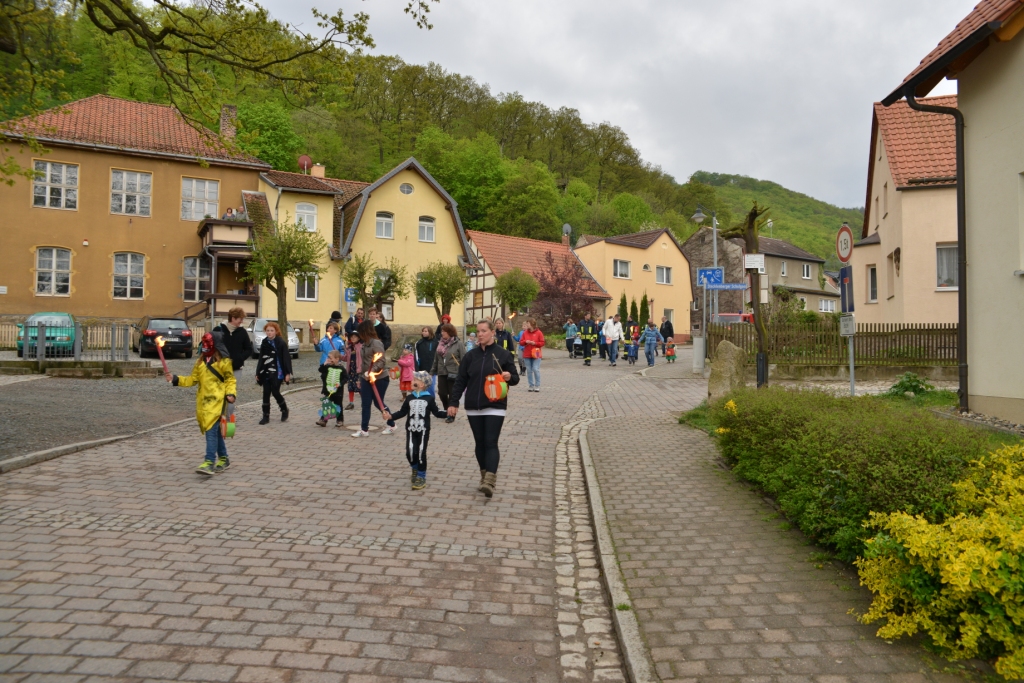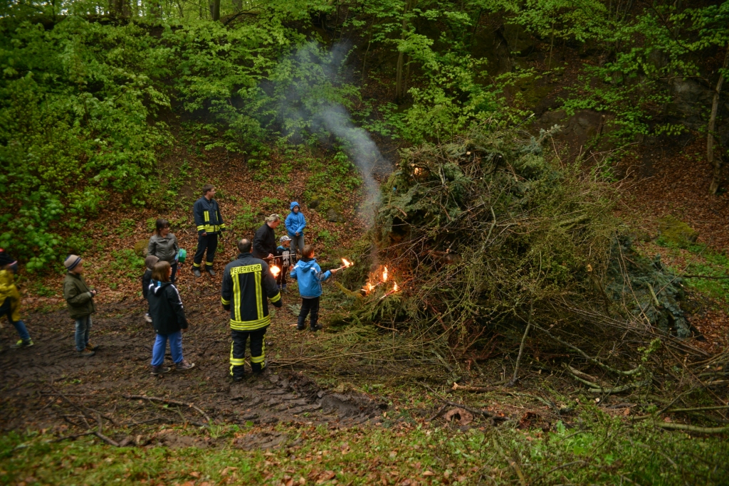 Mit diesen Laternen wurde dann erstmalig ein Laternen-und Fackelumzug durch die Feuerwehr durchgeführt, welcher vom Waldbad bis zum alten Turnplatz in Stecklenberg führte. Dort wurde dann das Walpurgisfeuer entzündet.