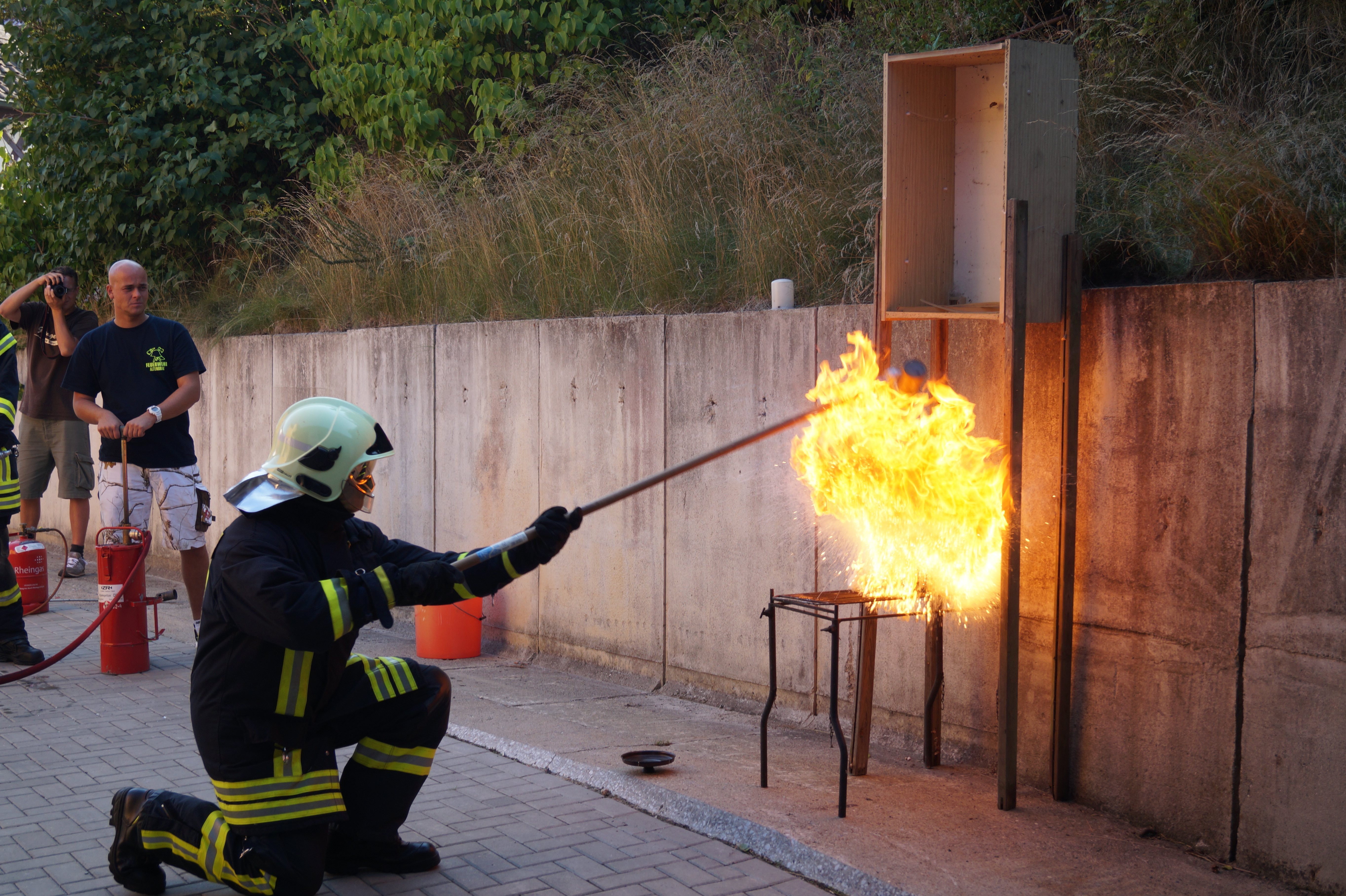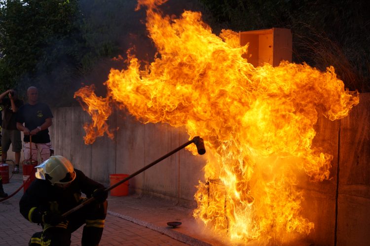 – Löschen von Entstehungsbränden mittels Feuerlöscher oder Strahlrohren