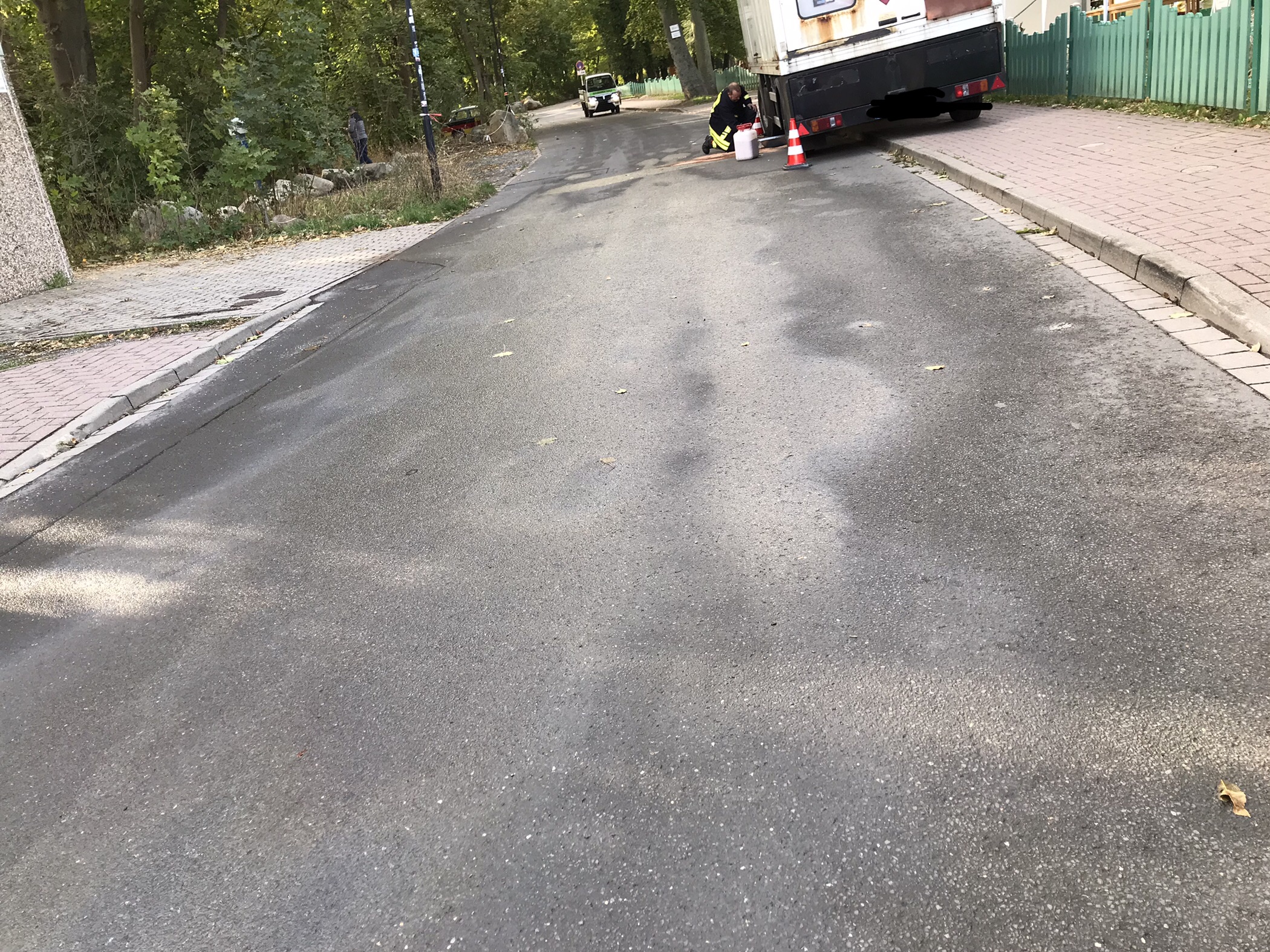 Die alarmierten Kräfte der Ortsfeuerwehr Thale konnten eine größere Menge ausgelaufenen Diesel auf der Straße sowie ein kleines Leck am Dieseltank feststellen.