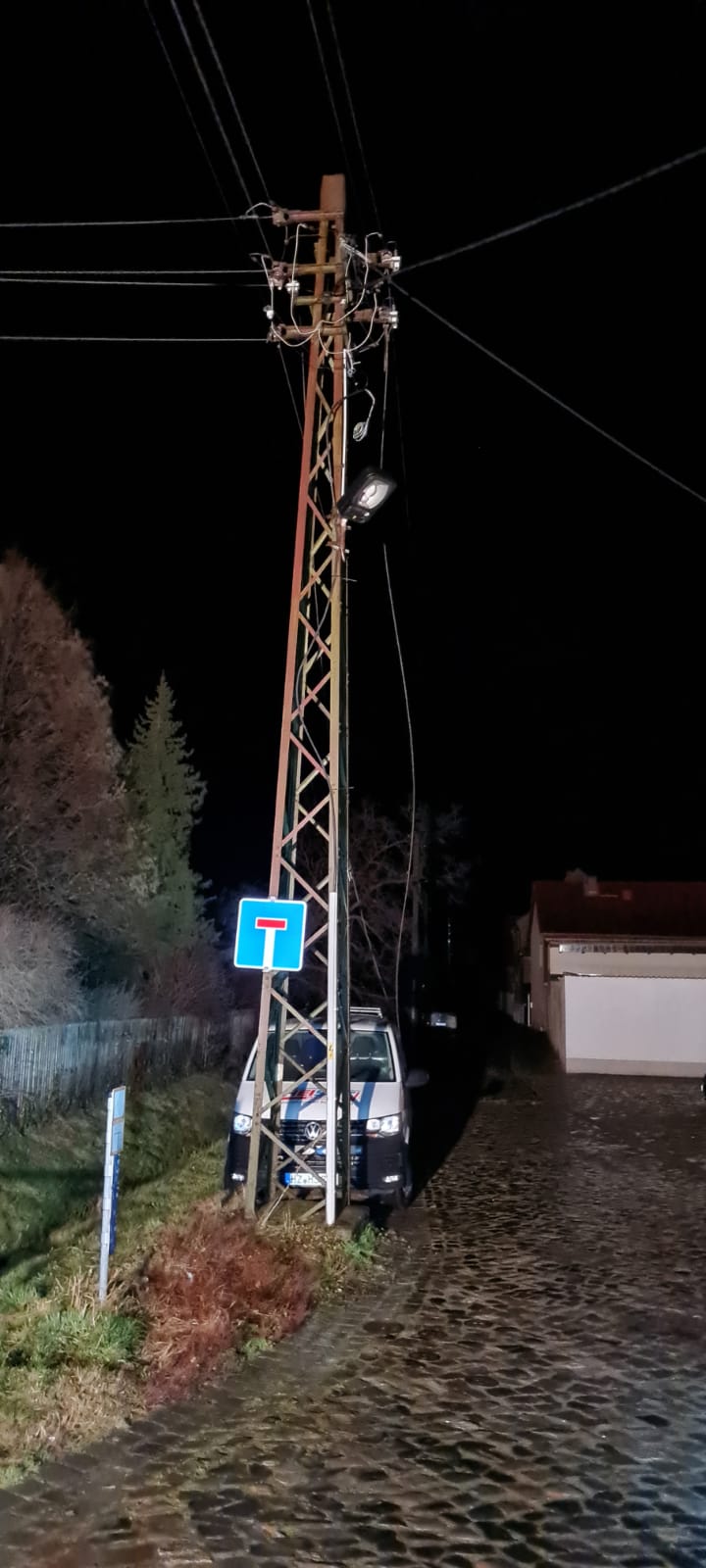 Vor Ort ist ein Baum aufgrund des Sturms in einer Freileitung gefallen, diese ist gerissen und lag auf einem Auto. Über die Leitstelle wurde der Energieversorger angefordert.