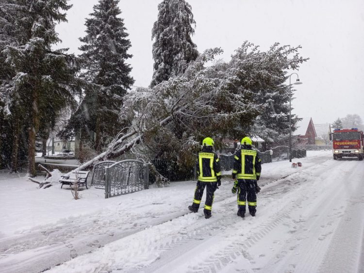 Ein Baum ist durch den Sturm umgekippt und ragte in den Verkehrsraum der Straße. Dier Baum wurde mittels Motorsäge beseitigt und die Feuerwehr konnte ihren Einsatz beenden.
