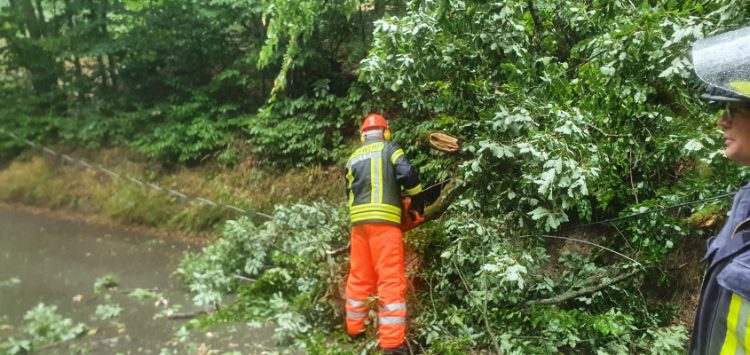 Die Ortsfeuerwehren Altenbrak und Treseburg wurden infolge des kurzen Unwetters zu einem umgestürzten Baum in Altenbrak alarmiert.