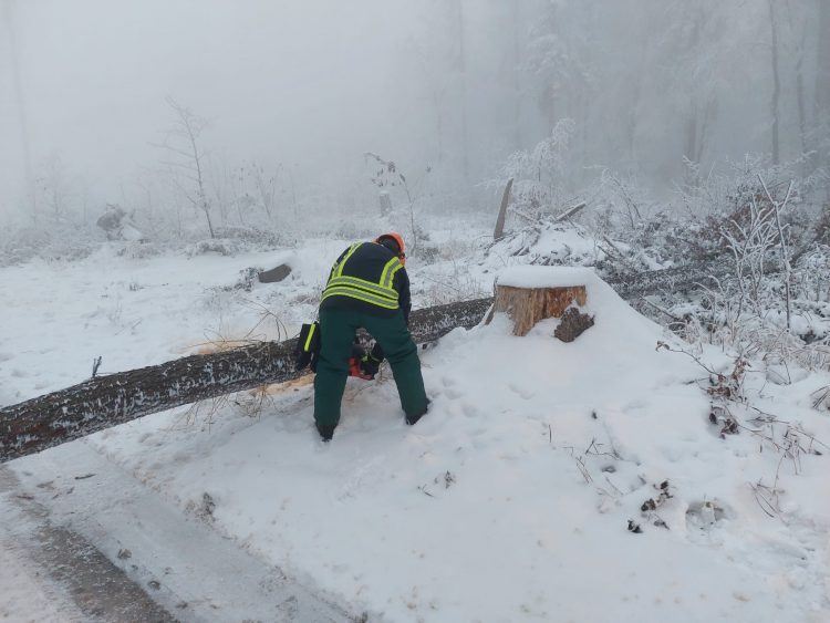 Erneut versperrte ein umgestürzter Baum die Fahrbahn auf dem Hexentanzplatz.