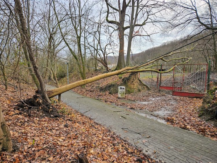 Ein Baum ist durch den Sturm in eine Telefonleitung gefallen und musste mittels Motorsäge entfernt werden.