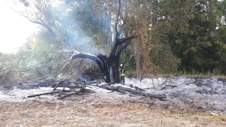 Die Feuerwehr Quedlinburg war bereits im Einsatz auf dem Radweg zwischen Quedlinburg und Neinstedt/ Weddersleben. Da sich das Einsatzgebiet auf Thalenser Gebiet bestand wurden die Kameraden ebenfalls alarmiert. Der Baum wurde abgelöscht und teilweise gefällt. Abschließend wurde der Rest mit Schaummittel abgedeckt.