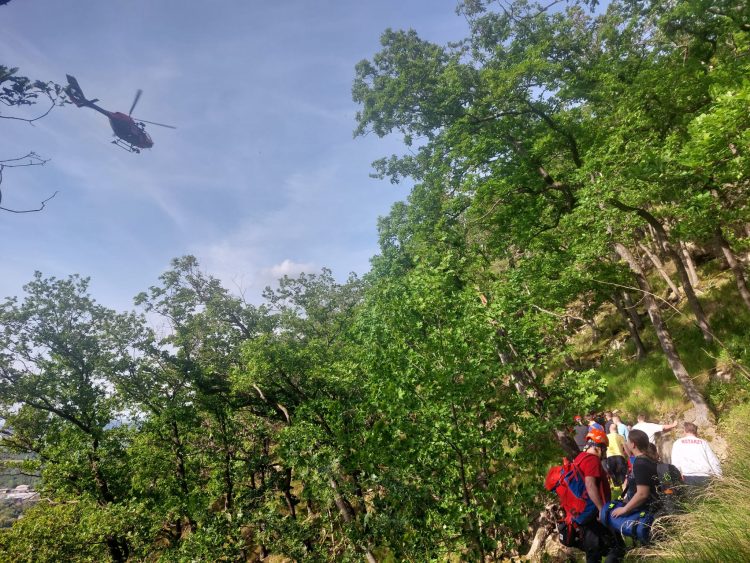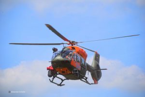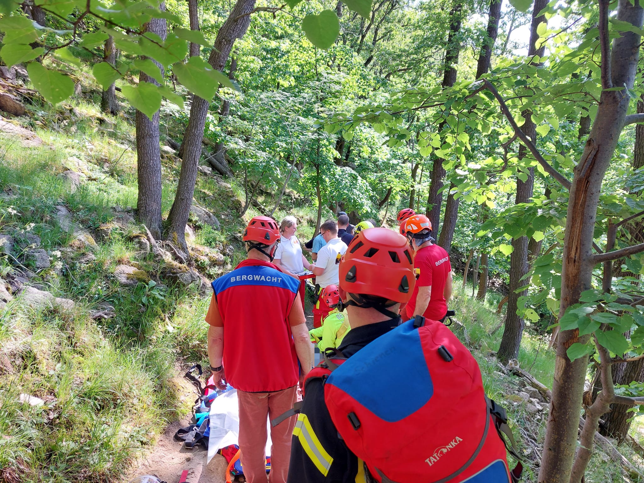 Diesmal musste eine Person aus dem Hexensteig gerettet werden. Auch hier unterstützte die Feuerwehr die Bergwacht mit Girl- und Manpower. Auch bei dieser Person wurde sich aufgrund der Lage für eine Rettung mittels Helikopterwinch entschieden. Dazu musste die Person mehrere hundert Meter auf den angrenzenden Sachsenwallweg getragen werden.