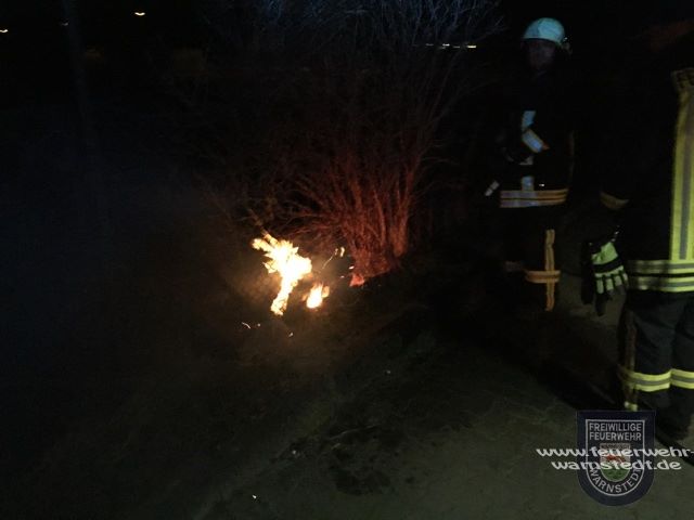 Auf dem Gelände der ehemaligen Gartenanlage kam es zu einem Grasflächenbrand von ca. 1qm, nachdem über Tag dort bereits unter Aufsicht abgebrannt wurde. Der Angriffstrupp ging mit dem Schnellangriff zum Löschangriff vor. Nach dem Löschen des offenen Feuers wurde die Fläche gründlich durchsucht und alle Glutnester konnten abgelöscht werden. Recht schnell kam die Meldung “Feuer aus” und wir konnten unsere Einsatzbereitschaft wieder herstellen.