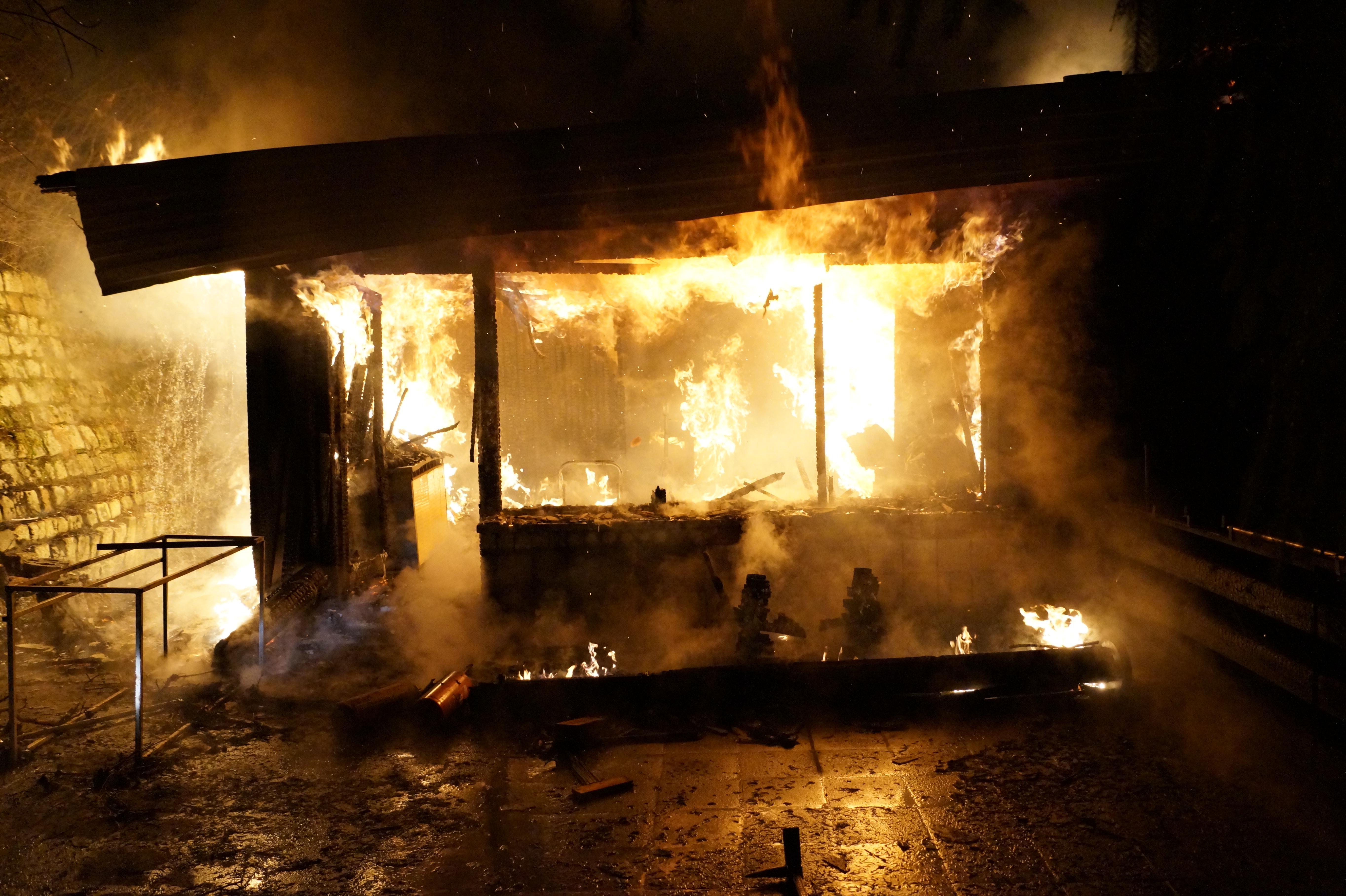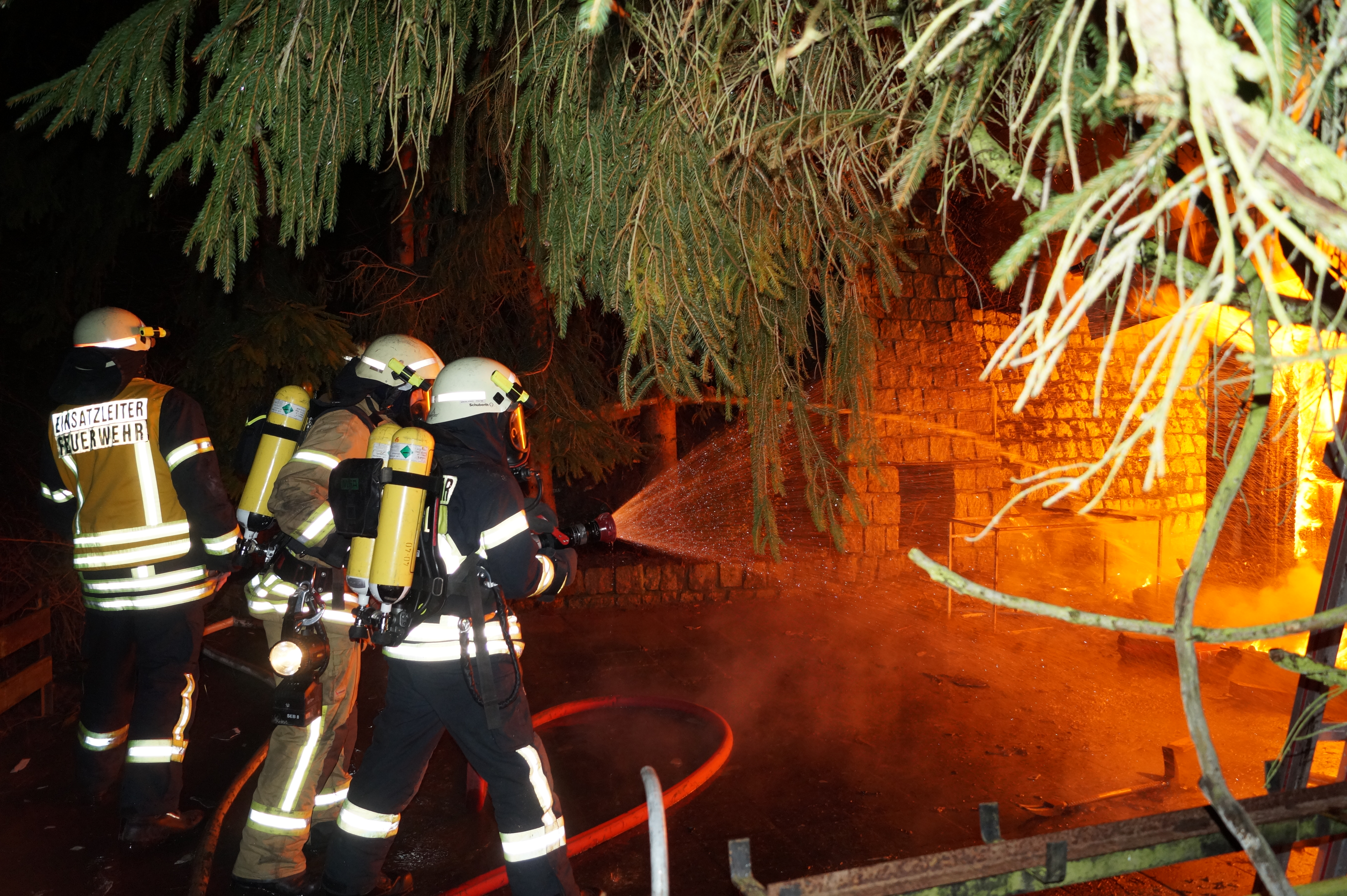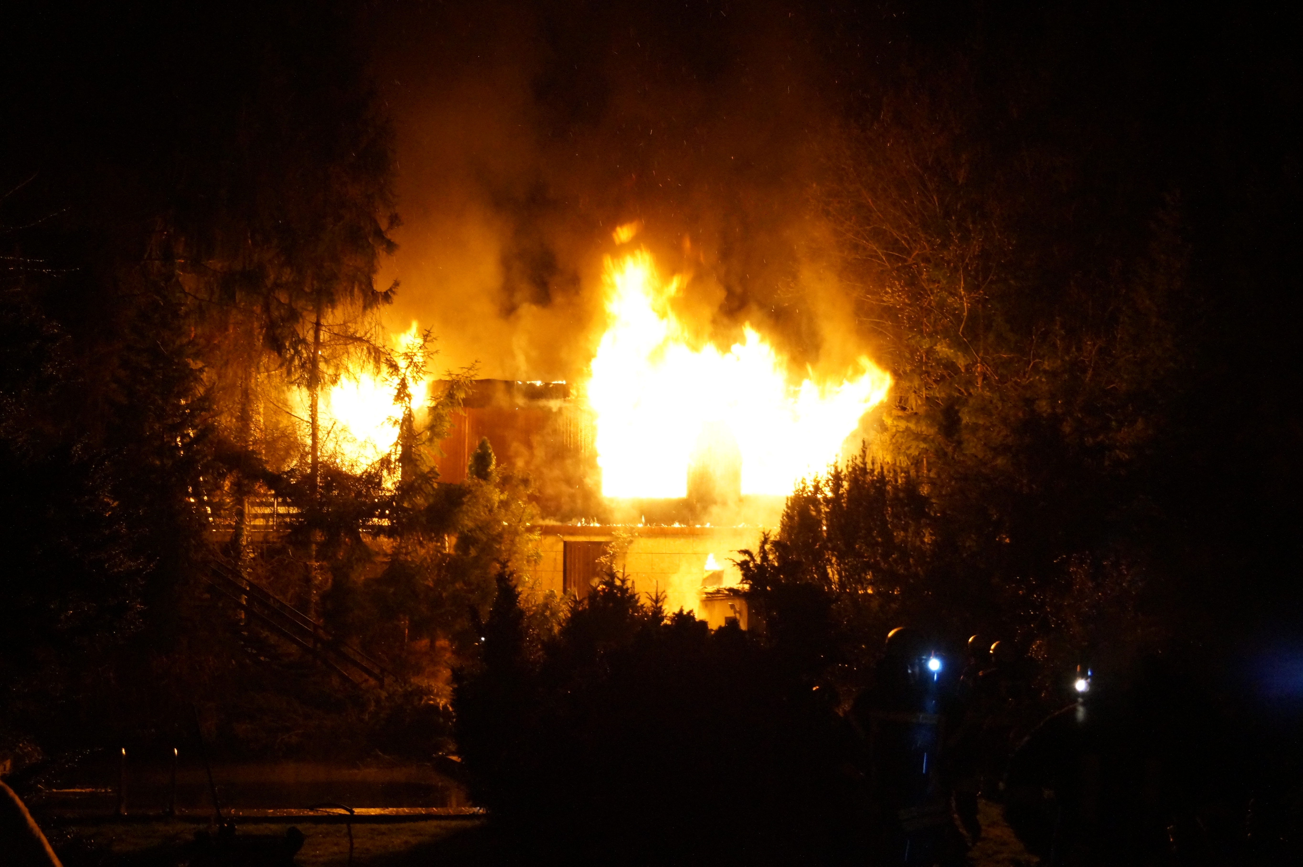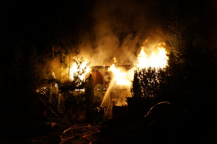 Am 22.01.2016 kam es gegen 18:20 Uhr zu einem Bungalowbrand im Silberbachtal in Thale. Bei Ankunft der Feuerwehr stand das Objekt bereits im Vollbrand. Durch die Lage des Gebäudes mußten 2 B-Leitungen von ca 100m verlegt werden, um dann mit 4 C-Strahlrohren den Außenangriff von 2 Seiten starten zu können. Nachdem der erste Löschangriff Wirkung zeigte, konnten weitere Atemschutztrupps mit dem Innenangriff beginnen, um einzelne Glutnester zu beseitigen. Durch die verwinkelte Bauart und dem massiven Holzanteil des Gebäudes mussten die Zwischendecken im Haus geöffnet und dann das darin lodernde Feuer gelöscht werden.