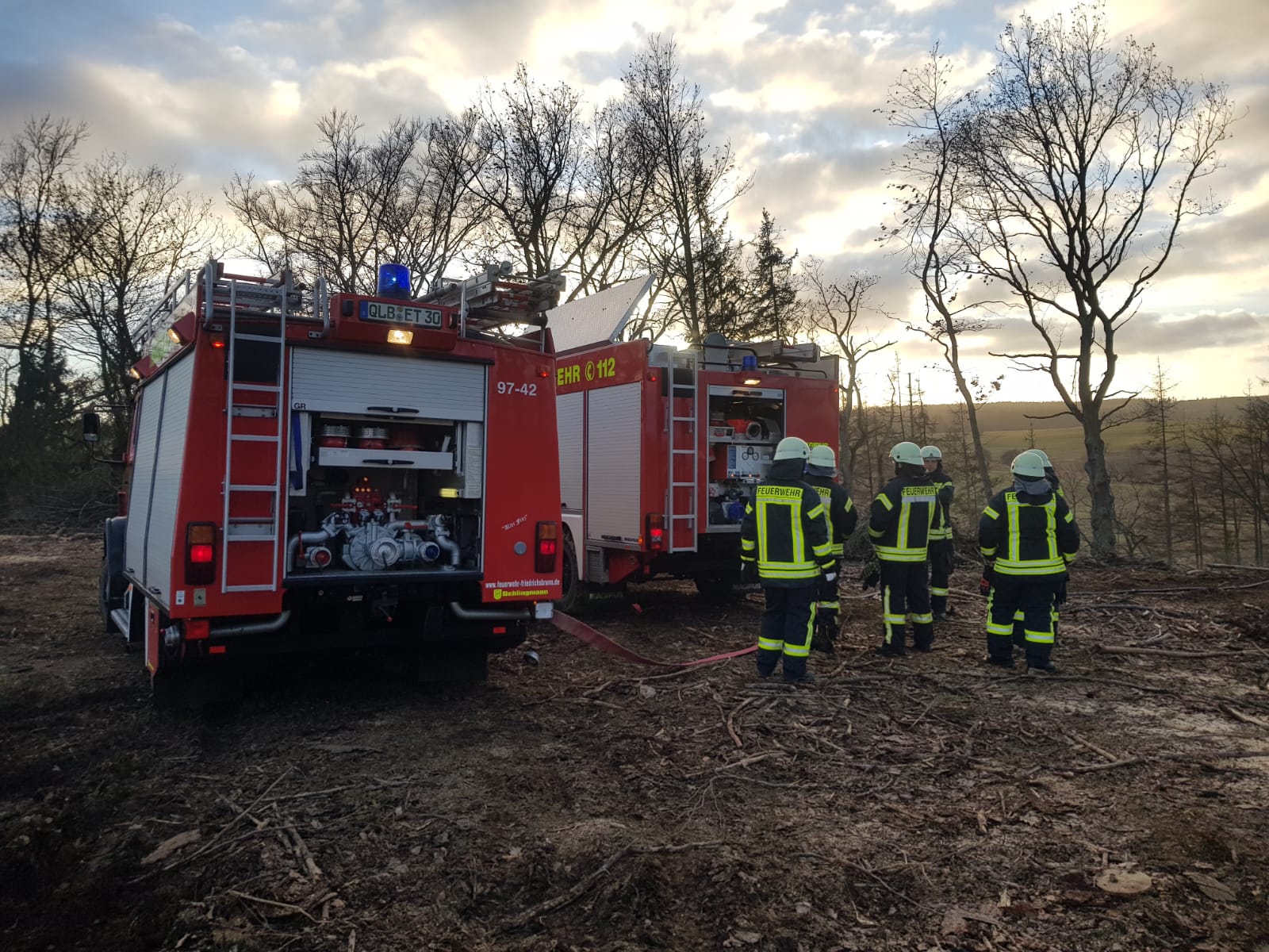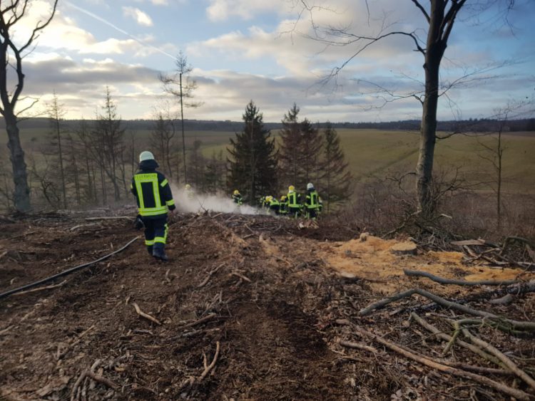 Beim Eintreffen gab es einen Schwelbrand auf ca. 20 qm gerodeter Waldfläche. Die Kameraden löschten den Bereich ab und konnten die weitere Ausbreitung verhindern.