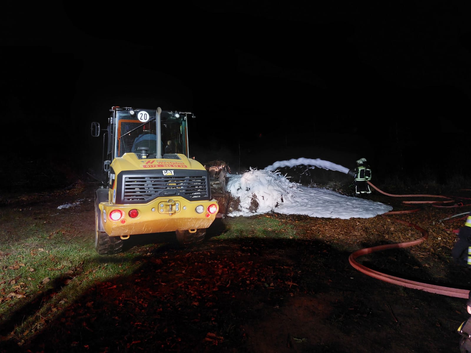 Nachdem das Feuer soweit gelöscht war, wurde der Unrat mithilfe eines Radladers auseinandergezogen und Glutnester abgelöscht.
