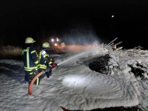 Am Sonntagabend wurde ein Flächenbrand in der Schreiberstraße in Friedrichsbrunn gemeldet. Die alarmierten Kräfte aus Friedrichsbrunn forderten bei Eintreffen am Einsatzort umgehend die Ortsfeuerwehren aus Allrode und Thale sowie den Einsatzleitdienst nach. Vor Ort brannte ein größerer Haufen Holz und Unrat. Die Einsatzkräfte aus Friedrichsbrunn bauten bis zum Eintreffen der nachrückenden Feuerwehren eine Wasserversorgung auf und begannen mit den ersten Löschmaßnahmen. Mit Unterstützung aus Allrode und Thale konnte dann eine weitere stabile Wasserversorgung aufgebaut und das Feuer mit mehreren Strahlrohren bekämpft und vor allem angrenzende Vegetation geschützt werden.