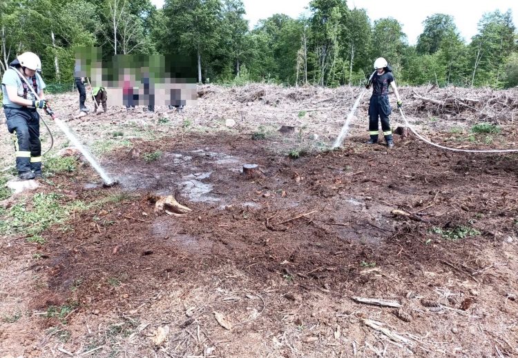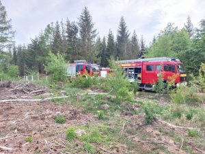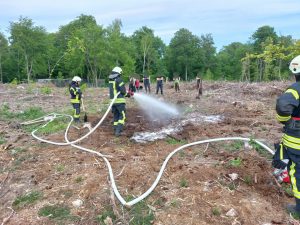 Eine Stunde nach der Erstalarmierung konnte “Feuer aus” gemeldet werden. Nach abschließenden Restlöscharbeiten mit zwei D-Rohren und Kontrollen mittels Wärmebildkamera, wurde die Einsatzstelle an den zuständigen Förster übergeben und der Einsatz für alle Kräfte beendet.