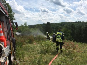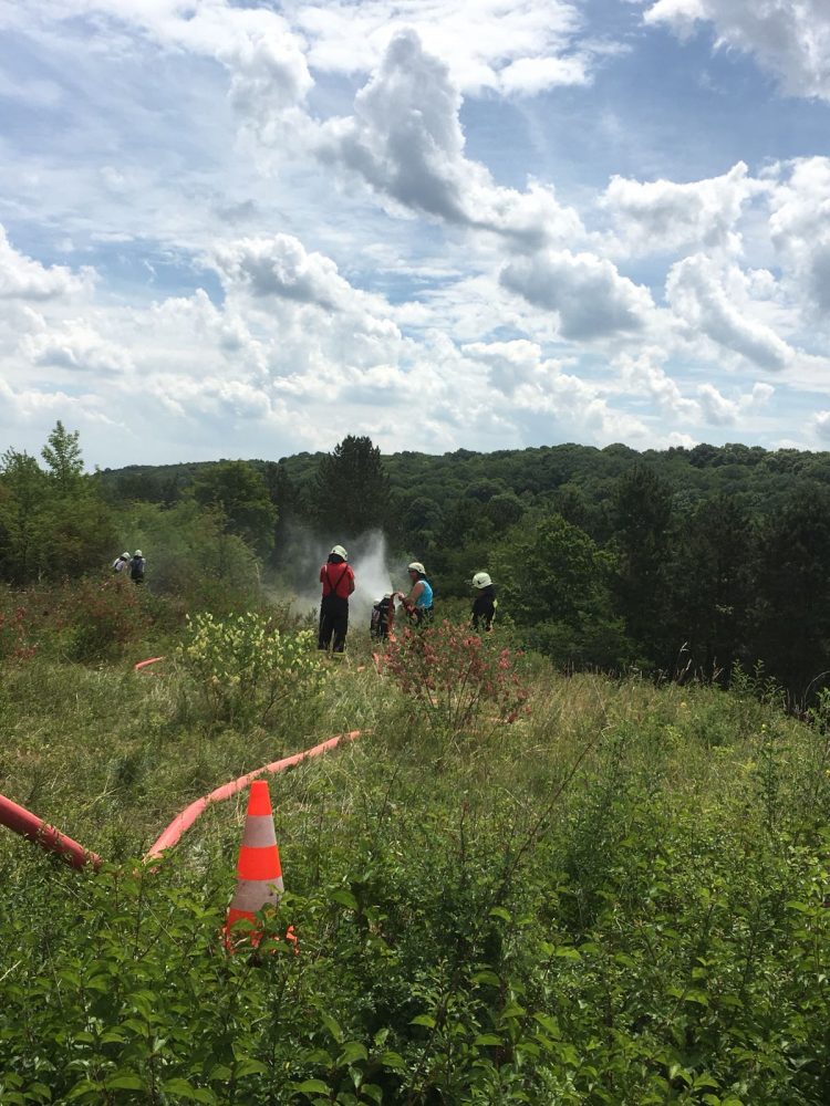 Die ca.200 m2 Fläche wurden mittels 3 C-Rohren und Netzwasser gelöscht. Eine Ausbreitung auf das angrenzende Waldgebiet wurde verhindert.