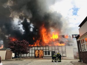 Bereits auf Anfahrt der ersten Einsatzkräfte konnte eine schwarze Rauchwolke über Neinstedt wahrgenommen und “Lage auf Sicht” an die Leitstelle gemeldet werden.