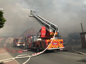 Mehrere Trupps unter Atemschutz nahmen somit von zwei Seiten die Brandbekämpfung vor. Zudem wurde ein Löschangriff mittels Monitor vom Drehleiterkorb aus vorgenommen.