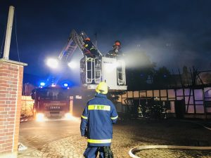 Der Einsatz dauerte bis in die Nacht an. Die Feuerwehr Neinstedt stellte nach den abschließenden Löscharbeiten eine Brandwache.