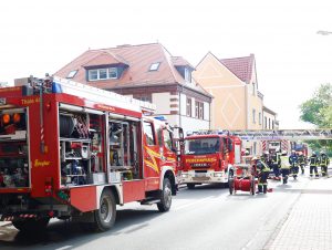 Die Feuerwehr Quedlinburg wurde wenig später zur Unterstützung mit Atemschutzgeräteträgern nachalarmiert.