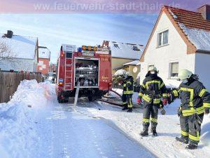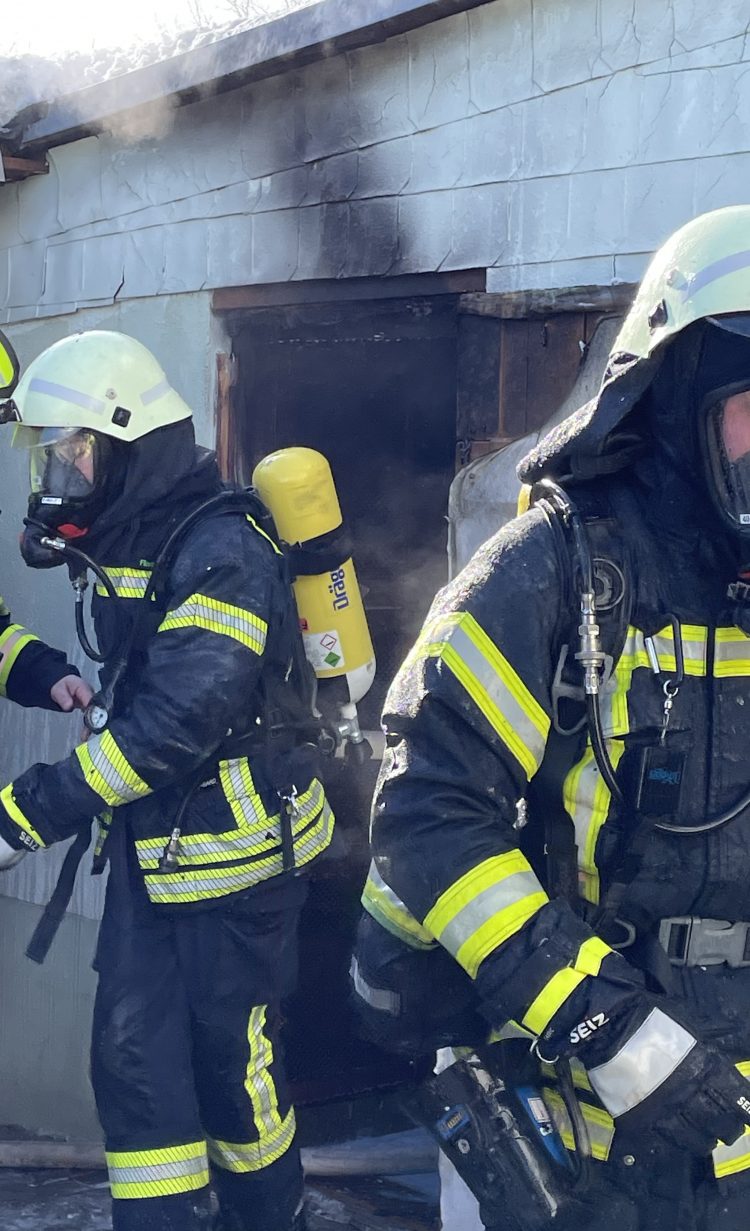 Vor Ort ergab die durchgeführte Lageerkundung ein Feuer in einem Schuppen im Nebengebäude. Der Angriffstrupp ging unter schwerem Atemschutz und mit einem C-Rohr zum Angriff vor, Personen befanden sich zu diesem Zeitpunkt nicht mehr in dem Schuppen.