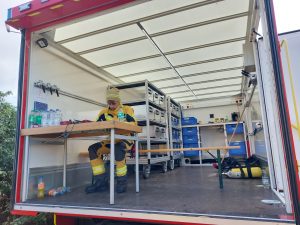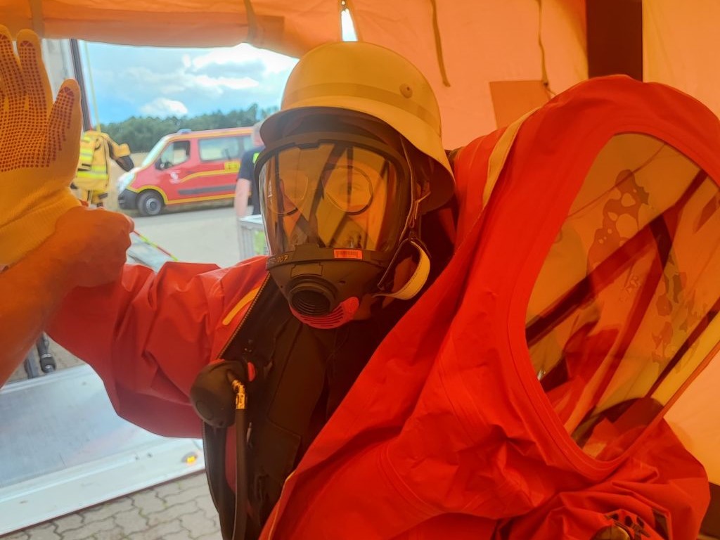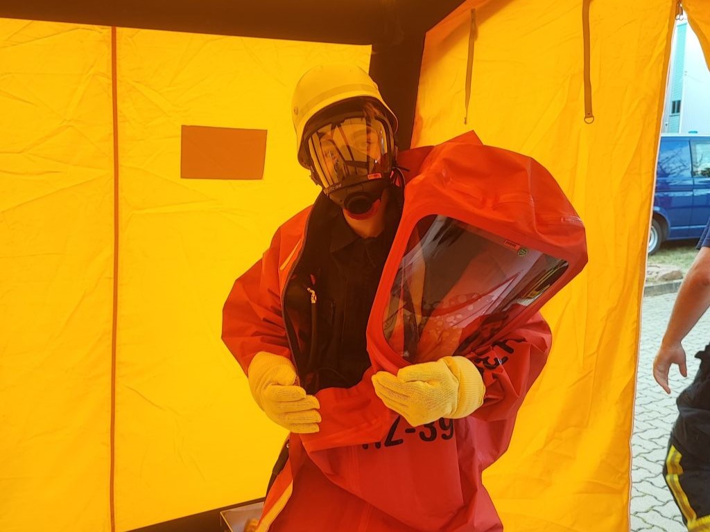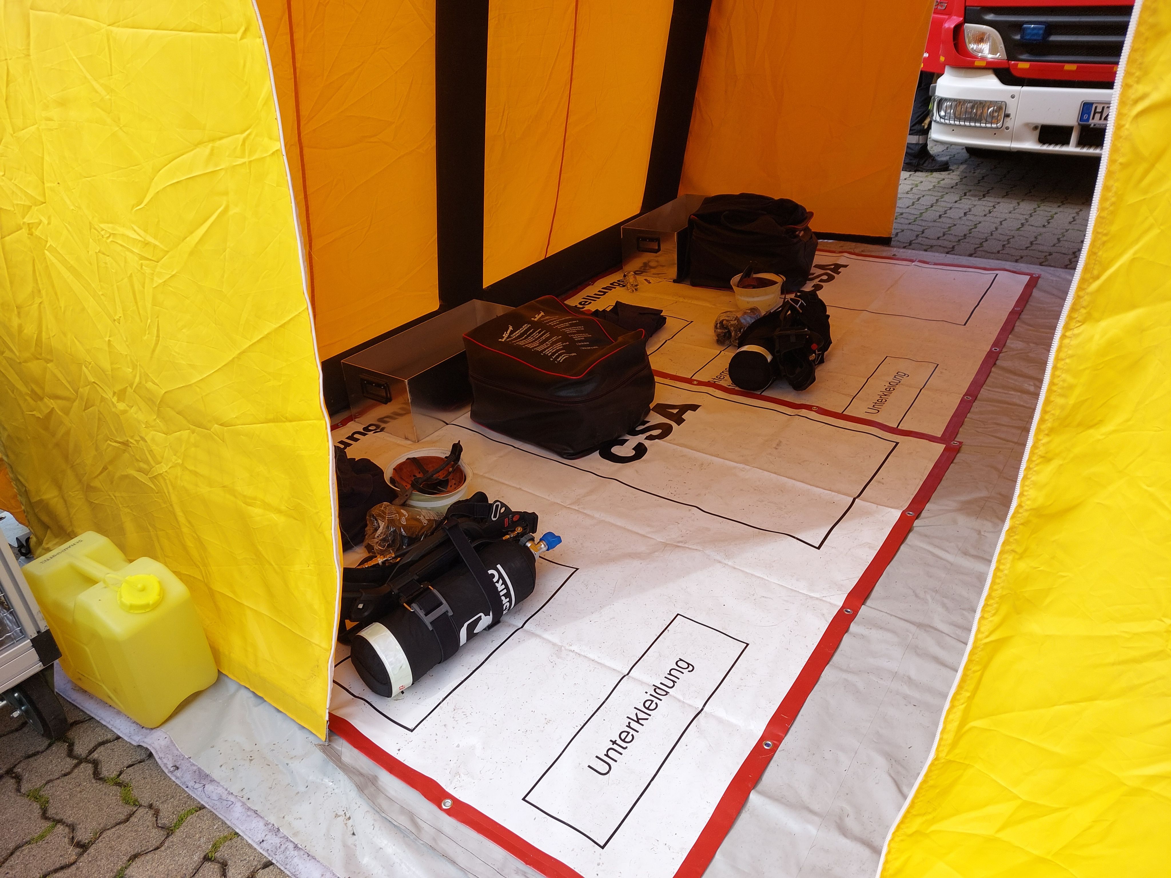Die Aufgabe der Ortsfeuerwehr Thale bestand darin, die vorgehenden Einsatzkräfte mit CSA auszustatten. Dazu gehört die Dokumentation der herausgegebenen Einsatzmittel, sowie das Unterstützen beim Anziehen.