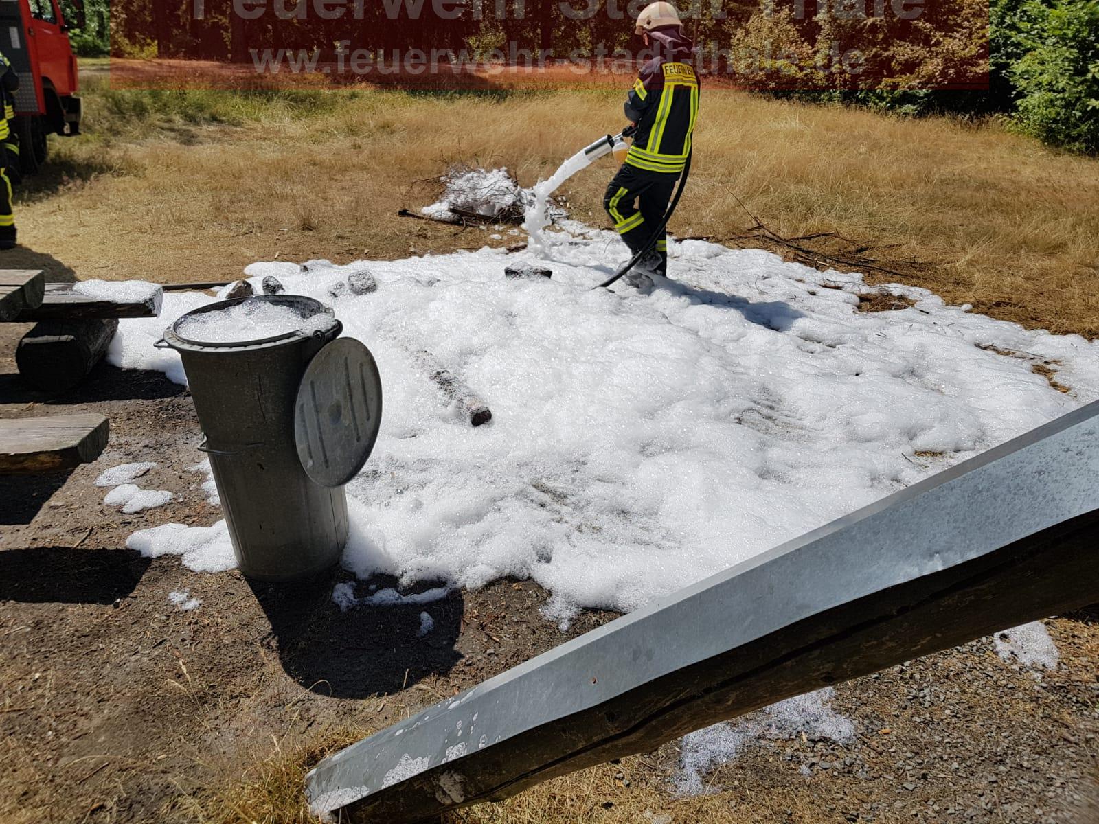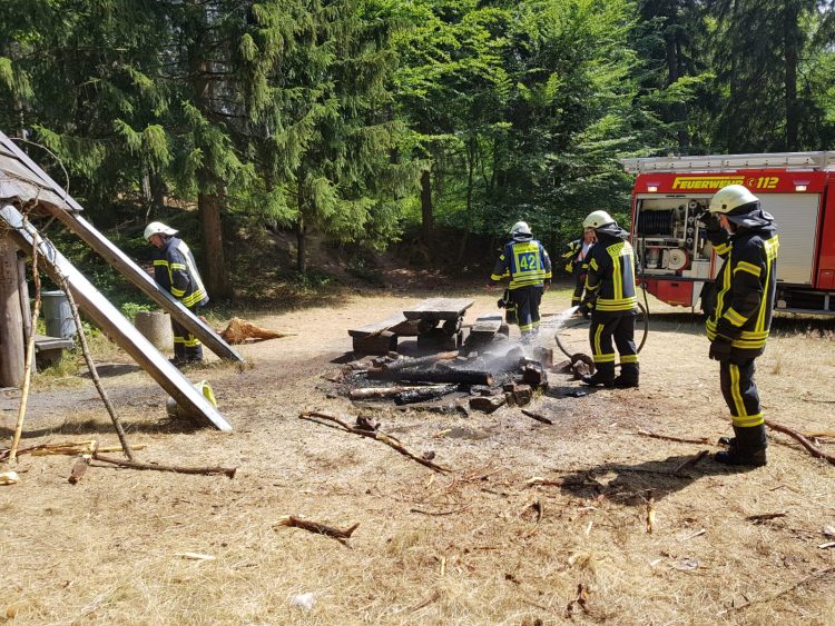 Vor Ort brannten Reste eines Lagerfeuers, welches aufgrund seines Auffindens wohl schon länger gebrannt hat. Das Feuer wurde mittels C-Rohr abgelöscht und anschließend wurde der komplette Bereich mit einem Schaumteppich überlegt. Abschließend wurde die Einsatzstelle mittels Wärmebildkamera auf mögliche Glutnester auch außerhalb der Lagerfeuerbereiches überprüft, jedoch bestanden keine weiteren Feuerquellen.
