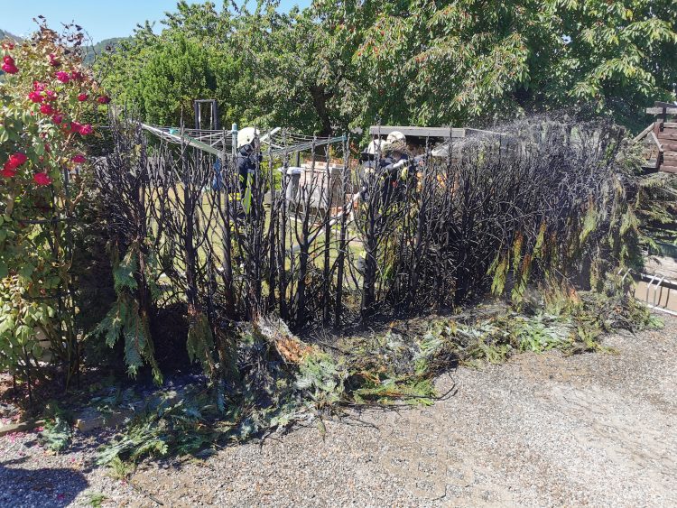 Wir weisen nochmals daraufhin, dass trotz des Regens letzte Woche eine große Trockenheit herrscht, ein derartiges Vorgehen ist unbedingt zu unterlassen, nur durch das Umsichtige Eingreifen von Nachbarn mit Feuerlöschern und dem schnellen Einsatz der Feuerwehr konnte das Übergreifen des Feuers auf ein Doppelcarport verhindert werden.
