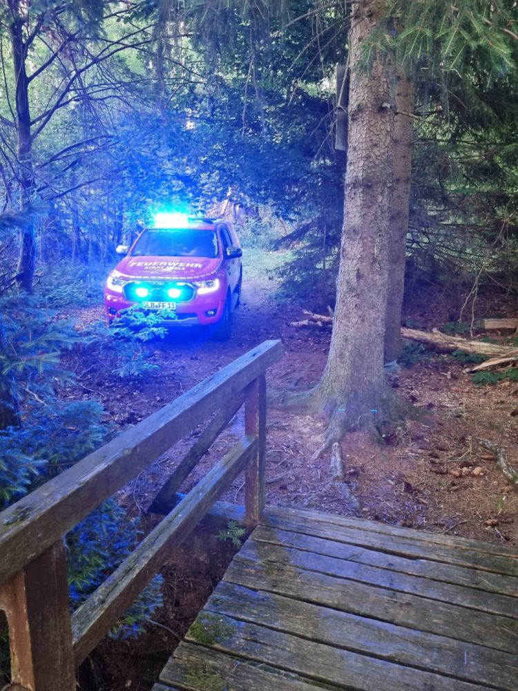 Vor Ort brannte ein Baumstumpf. Das Feuer wurde mittels Löschrucksack gelöscht und eine Kontrolle mittels Wärmebildkamera durchgeführt.