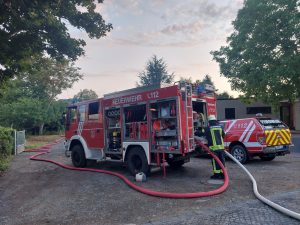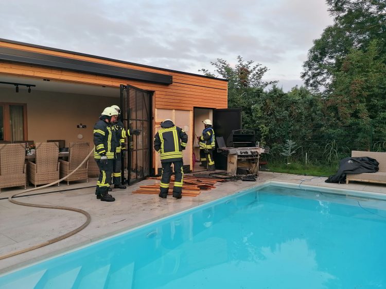 Am Freitagabend wurden die Ortsfeuerwehren Weddersleben, Warnstedt, sowie der Einsatzleitdienst zu einem Kleinbrand nach Weddersleben alarmiert. Beim Eintreffen der ersten Einsatzkräfte konnte ein brennender Gasgrill festgestellt werden. Da der Brand sich auf eine Fassade ausgeweitet hatte wurde die Ortsfeuerwehr Neinstedt nachalarmiert. Umgehend wurde ein Löschangriff aufgebaut und die Wasserversorgung sicher gestellt. Das Feuer konnte schnell unter Kontrolle gebracht werden. Die Gasflasche wurde zur weiteren Kühlung in einen Pool verbracht. Nach der abschließenden Kontrolle mittels Wärmebildkamera und der Entfernung einer Holzverkleidung konnte der Einsatz beendet werden.