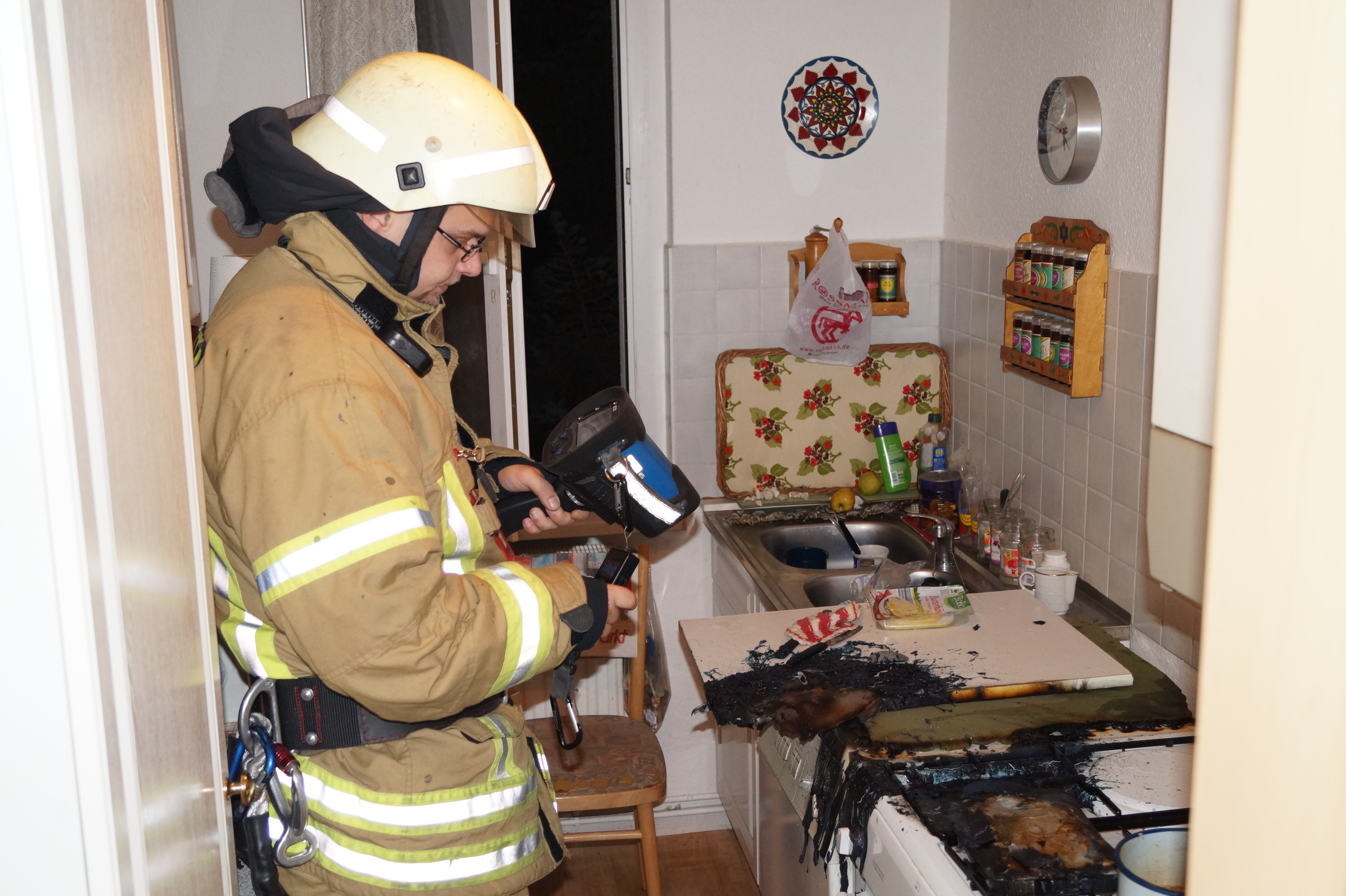 Nachdem der Rettungsdienst als erstes Rettungsmittel eingetroffen war, konnte durch die Einsatzkräfte kein Feuer mehr wahrgenommen werden. Durch ein schnelles und beherztes Eingreifen von Nachbarn, konnte das angebrannte Essen schnell gelöscht werden. Die Kameraden der Ortsfeuerwehr Thale kontrollierten dennoch die Küchenmöbel mit einer Wärmebildkamera nach Glutnestern und stellten die Versorgungsleitungen für Strom, Wasser und Gas im Küchenbereich ab.