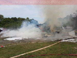 Nachdem das Feuer gelöscht und alle sichtbaren Glutnester erloschen waren, konnte alle Einsatzkräfte den Einsatz erstmal beenden und die Einsatzstelle wurde dem Eigentümer übergeben.