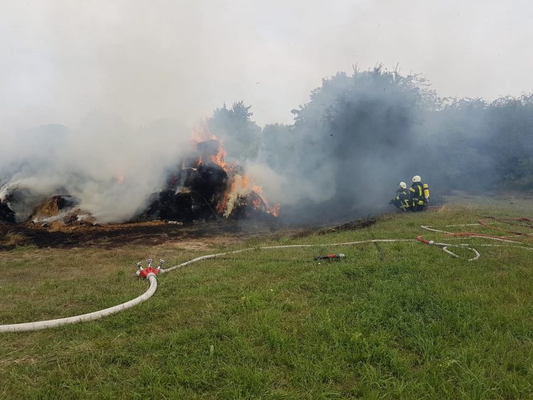 Zur weiteren Absicherung des Waldes und zur Verhinderung der Ausbreitung wurde ein Schaumteppich im entsprechenden Bereich aufgetragen. Mit Technik des Bauhofes und einer Privatperson wurden die Ballen auseinander gezogen, um eine effektive Ablöschung zu gewährleisten und Glutnester aufzuspüren. Dabei wurde neben “normalem” Löschwasser auch Netzmittel eingesetzt.
