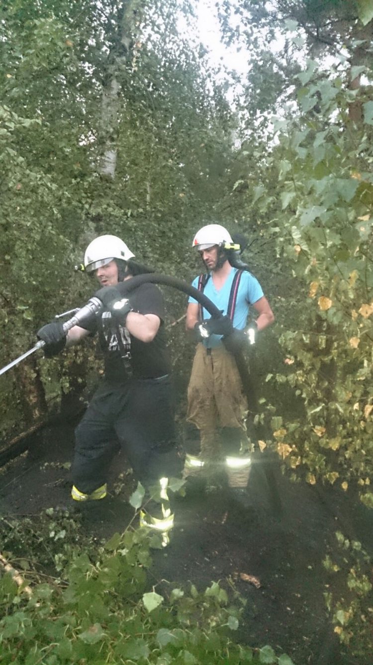 Die Einsatzkräfte der Ortsfeuerwehr Thale bei der Waldbrandbekämpfung in Langenstein wurden ausgetauscht.